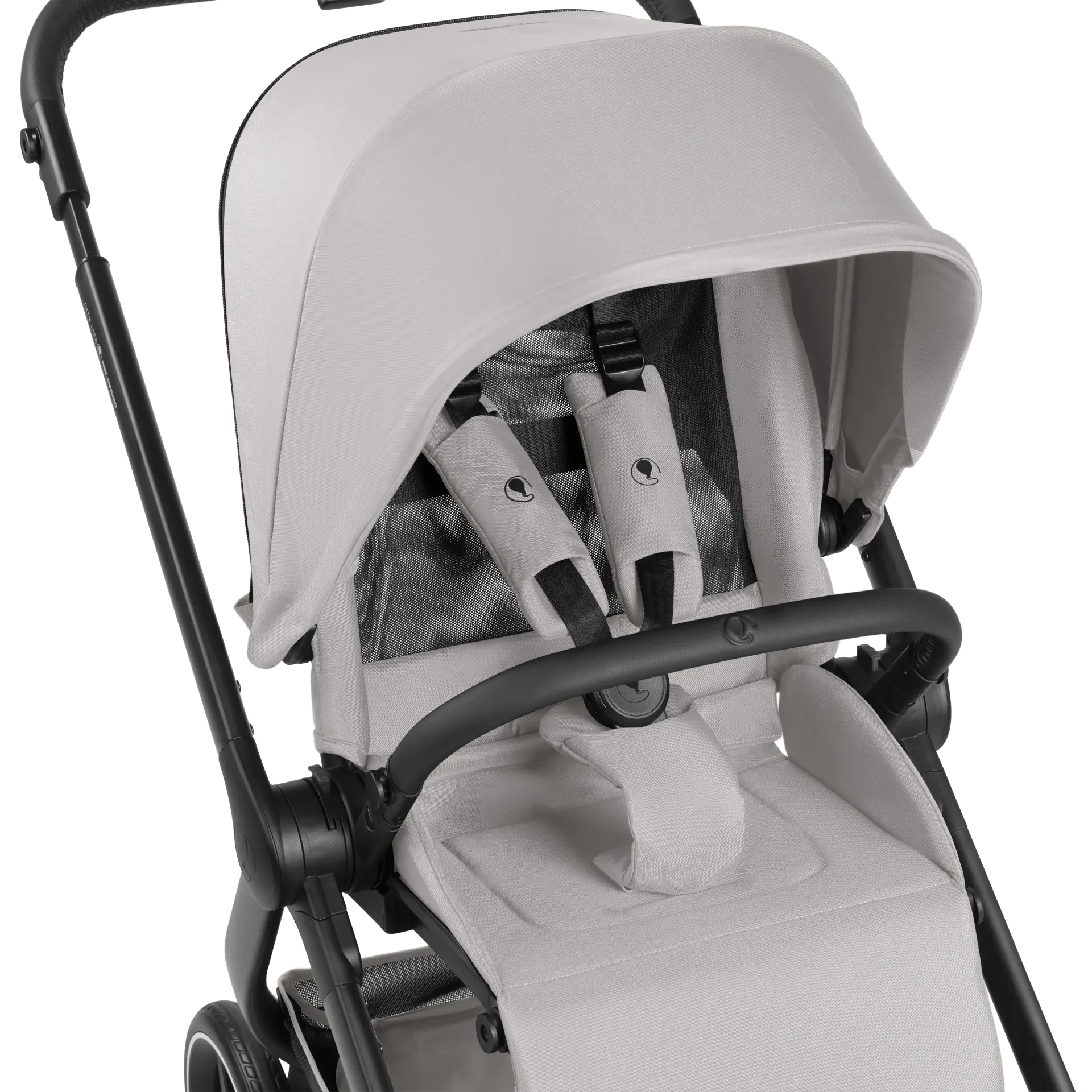 Dein Kind sitzt dabei ruhig, geschützt und bequem. Der Sitz passt sich dem Moment an. Aufrecht für neugierige Blicke oder flach für eine Pause zwischendurch. Die gute Belüftung sorgt auch an warmen Tagen für ein angenehmes Klima. Das große Sonnenverdeck schenkt Schatten und Geborgenheit, egal ob beim Spaziergang durch die Altstadt oder auf dem Weg zum Spielplatz.