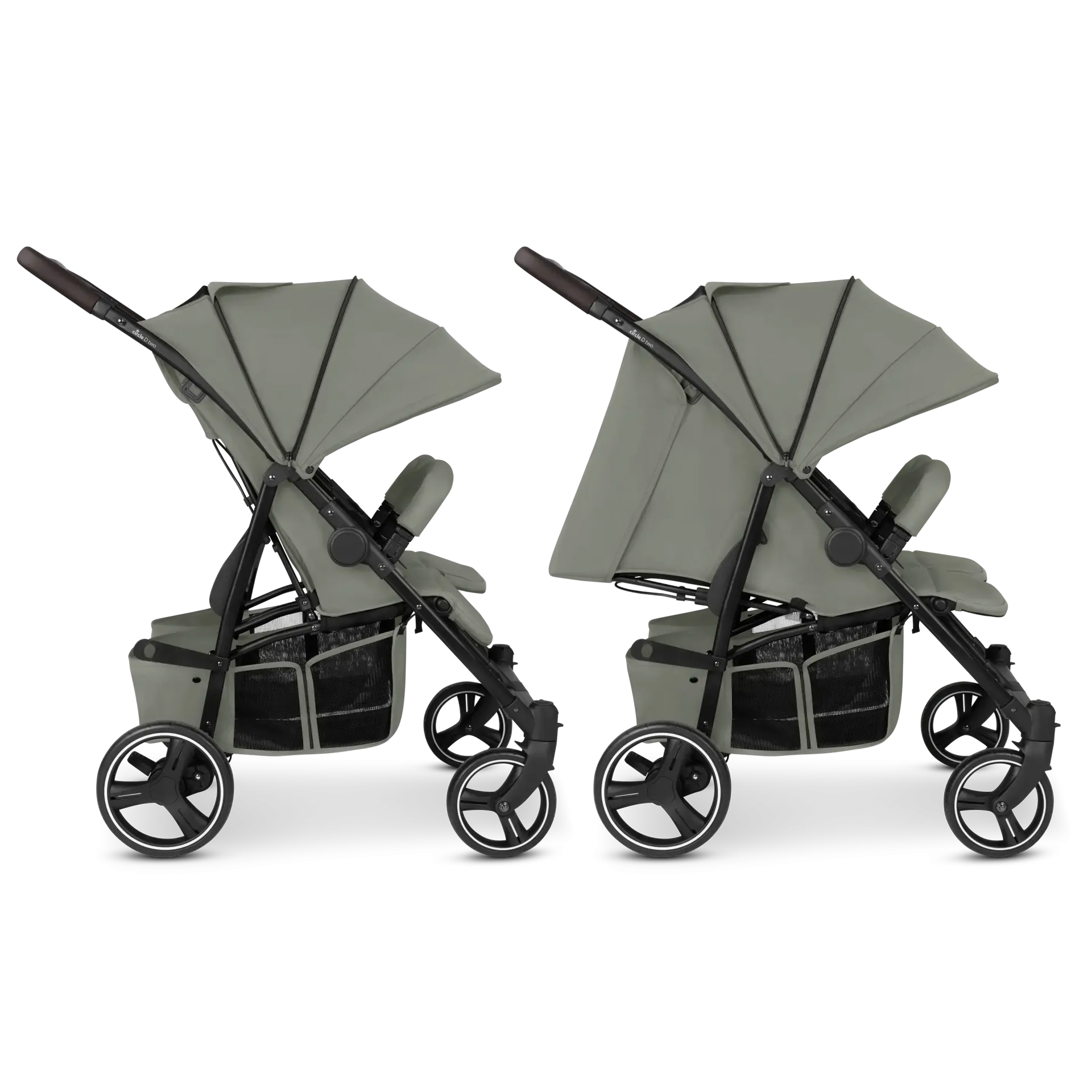 Die ruhige Federung und die stabilen Airless Räder sorgen für eine gleichmäßige Fahrt auf verschiedenen Untergründen. Eltern können den Wagen leicht steuern, auch wenn zwei Kinder an Bord sind. Dadurch bleiben Spaziergänge im Park, Wege durch die Stadt oder kleine Familienausflüge entspannt und kontrollierbar.