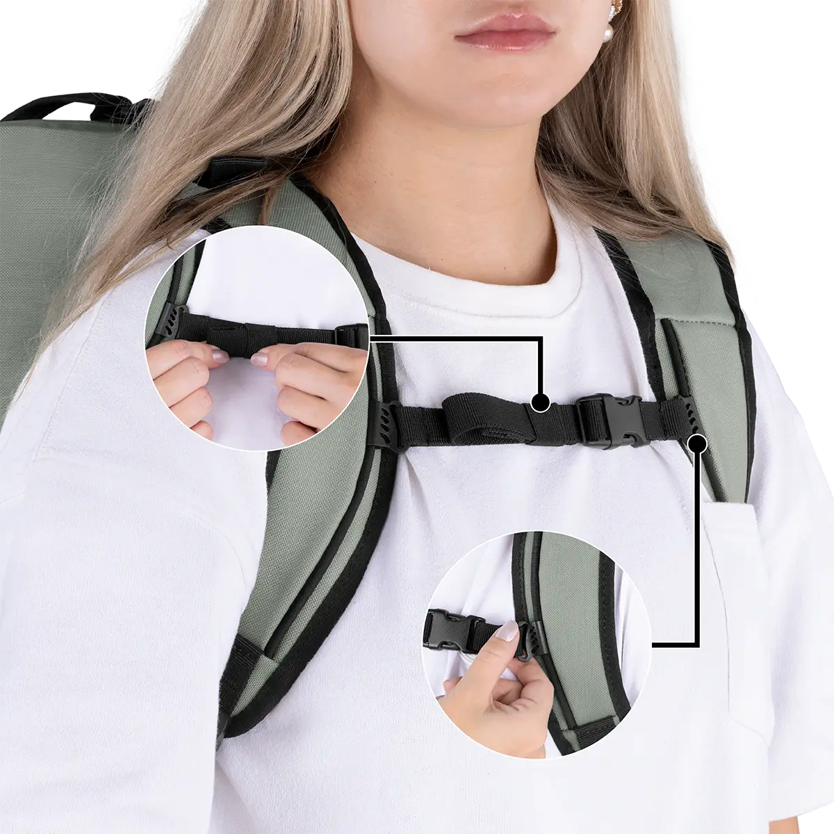 • Fixierte Gurtenden bleiben ordentlich verstaut und erhöhen den Tragekomfort.