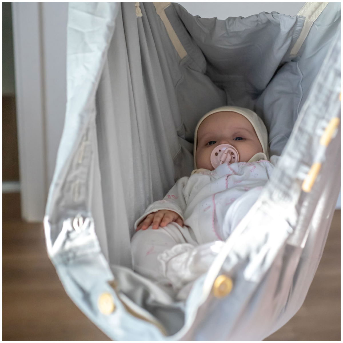 Wenn dein Baby abends schwer zur Ruhe kommt, hilft die sanfte Bewegung beim Entspannen. Das leichte Schwingen fühlt sich vertraut an und erinnert an die Zeit im Bauch. Viele Eltern sehen, wie ihr Baby schneller einschläft und ruhiger bleibt. So werden auch kurze Pausen am Tag spürbar entspannter für euch beide.