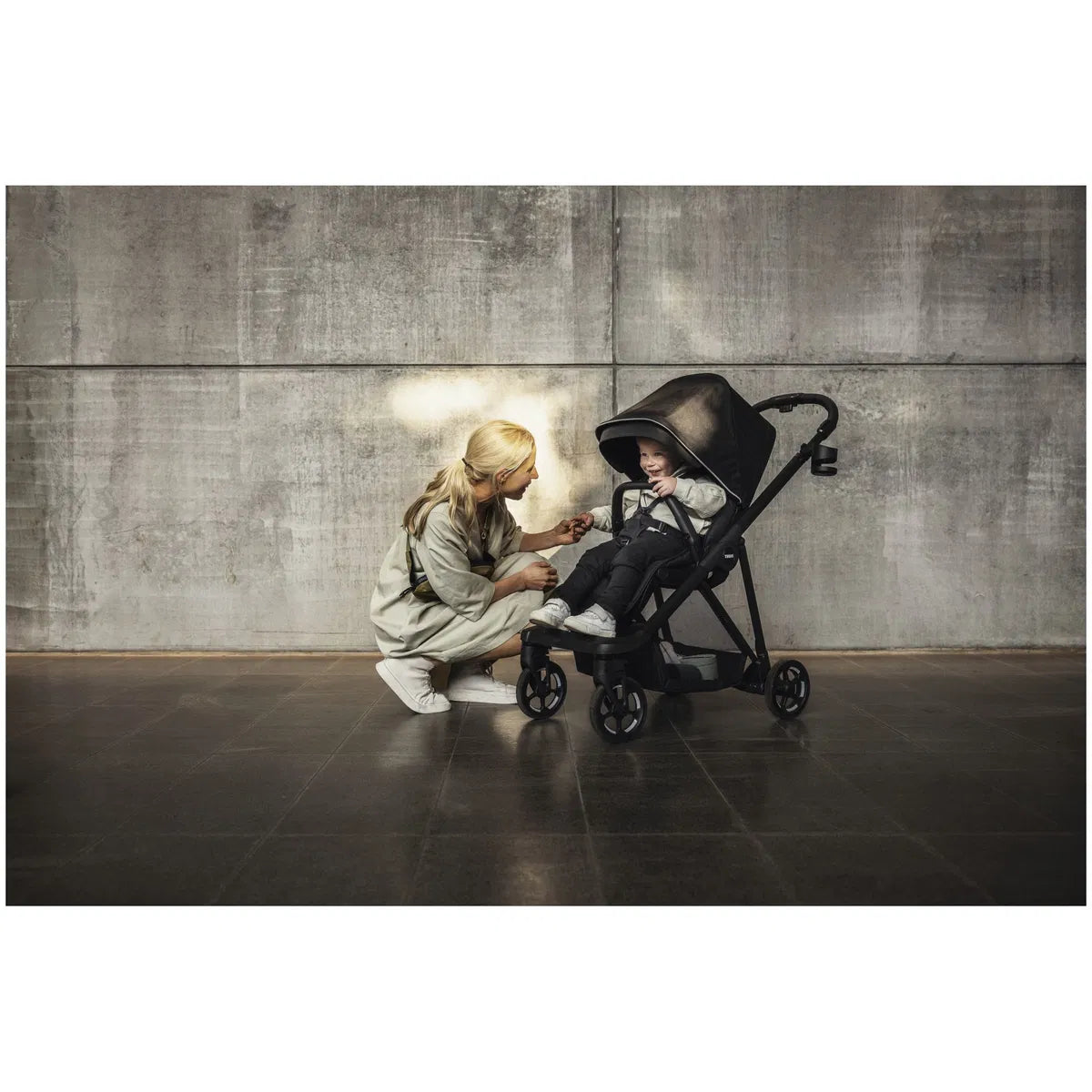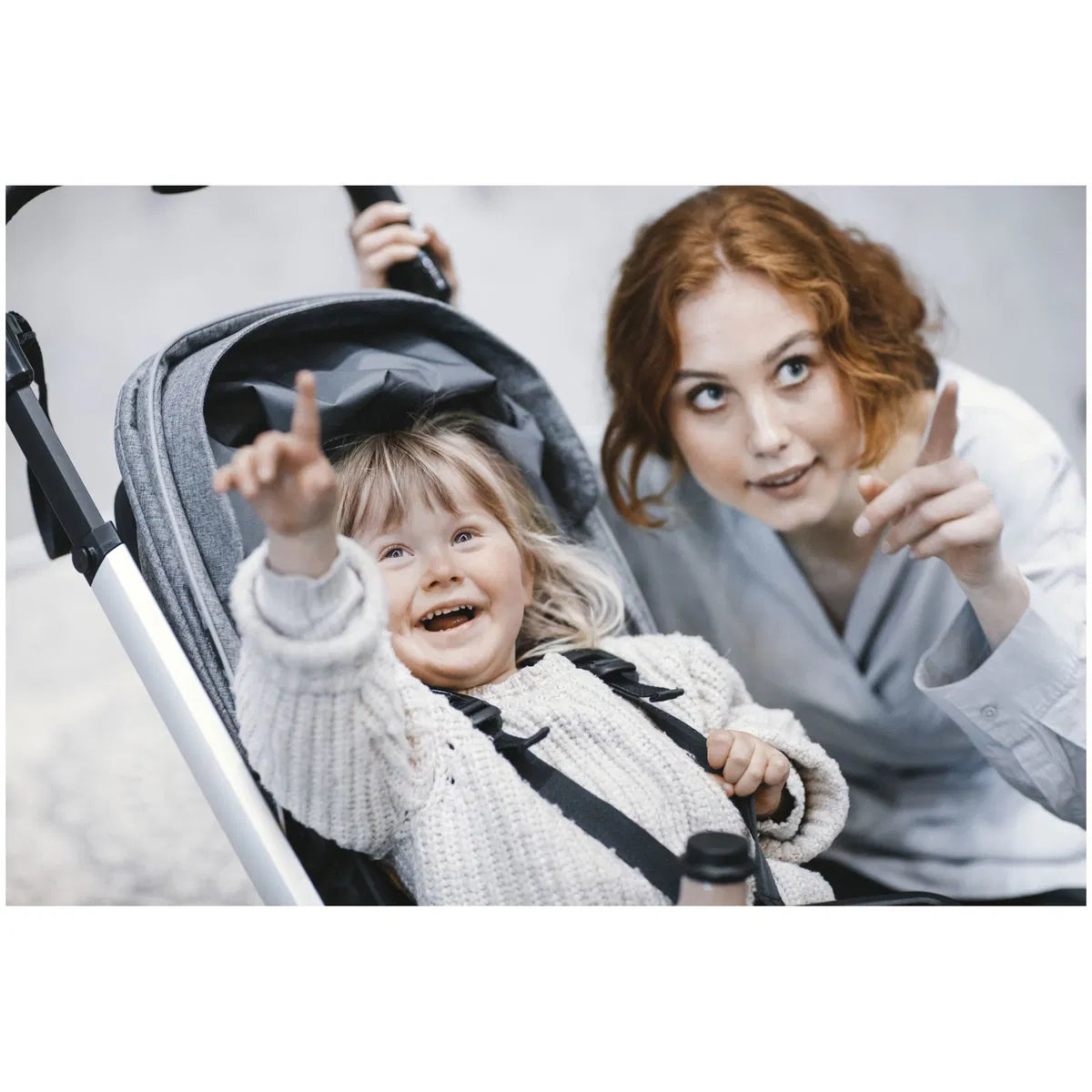 Schon beim ersten Schieben spürst du die Leichtigkeit. Der Buggy reagiert ruhig und präzise, selbst auf Kopfsteinpflaster oder unebenen Wegen. Dein Baby sitzt weich gepolstert, gut gestützt und kann dank der fast flachen Liegeposition jederzeit einschlafen. Das grosse Verdeck schützt zuverlässig vor Sonne und Wind und schafft einen ruhigen Rückzugsort mitten im Trubel der Stadt.