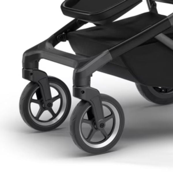 Der Kinderwagen überzeugt durch hochwertige Verarbeitung, intuitive Handhabung und durchdachte Sicherheitsmerkmale. Dazu gehören ein gepolsterter 5-Punkt-Gurt, ein schwenkbarer Schutzbügel für einfaches Ein- und Aussteigen sowie pannensichere Schaumräder mit stoßdämpfender 4-Rad-Federung – perfekt für Spaziergänge in der Stadt oder auf unebenem Terrain. Die höhenverstellbare Schiebestange passt sich jeder Körpergröße an und sorgt für ergonomischen Fahrkomfort. Auch in Sachen Stauraum punktet der Thule Sleek mit einem geräumigen Gepäckkorb, der sich mit einem Reißverschluss verschließen lässt. Dank seines kompakten Faltmaßes lässt sich der Wagen mühelos verstauen und transportieren.