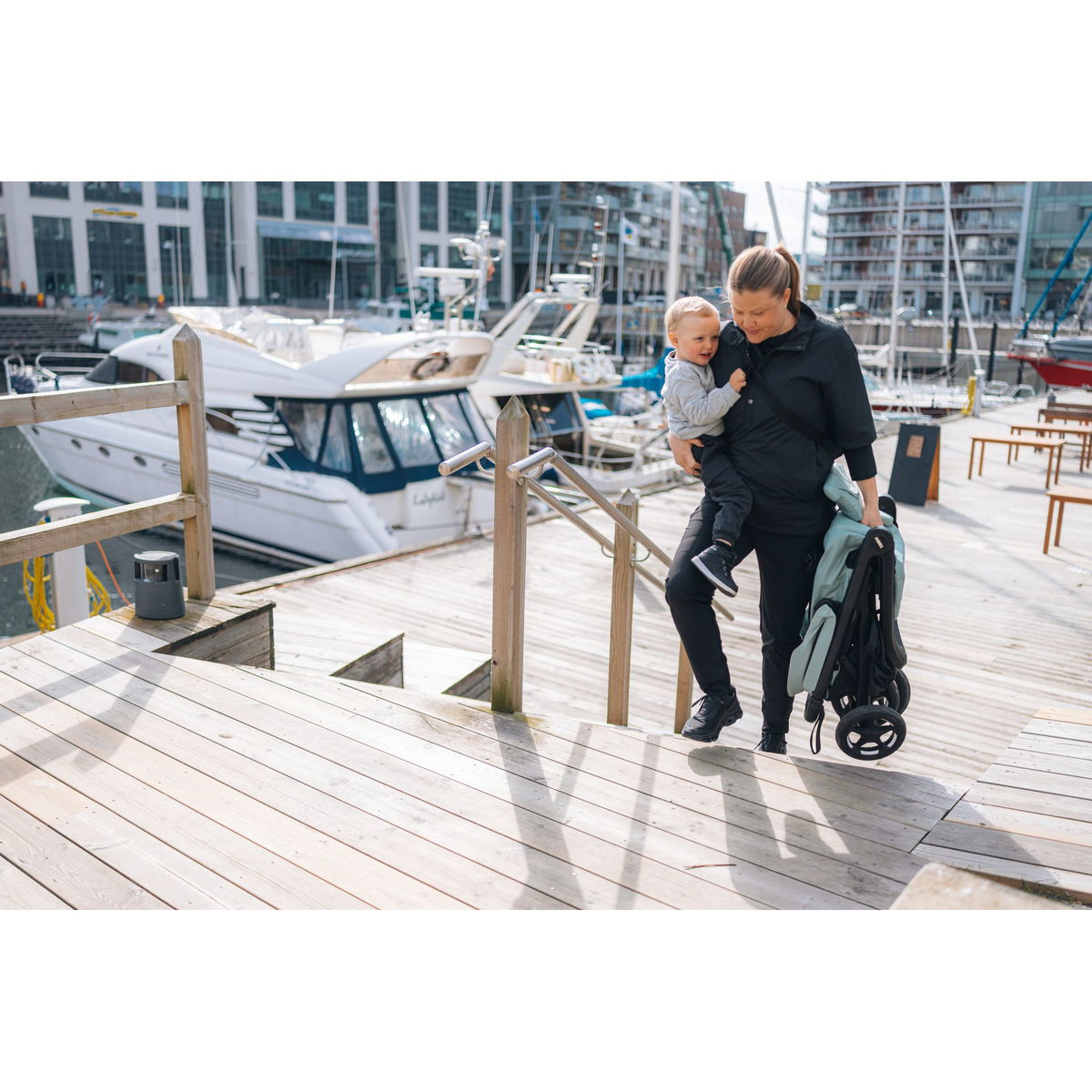 Der Thule Spring 2 wurde für Eltern entwickelt, die im Alltag flexibel bleiben möchten, ohne auf Komfort oder Sicherheit zu verzichten. Er verbindet die Wendigkeit eines kompakten Stadtwagens mit der Stabilität eines Allterrain-Kinderwagens. Das zeigt sich bei jedem Schritt, ob auf dem Trottoir, im Park oder auf unebenem Untergrund. Der Wagen lässt sich intuitiv führen, reagiert ruhig auf Bodenwechsel und gibt dir jederzeit ein sicheres Gefühl.